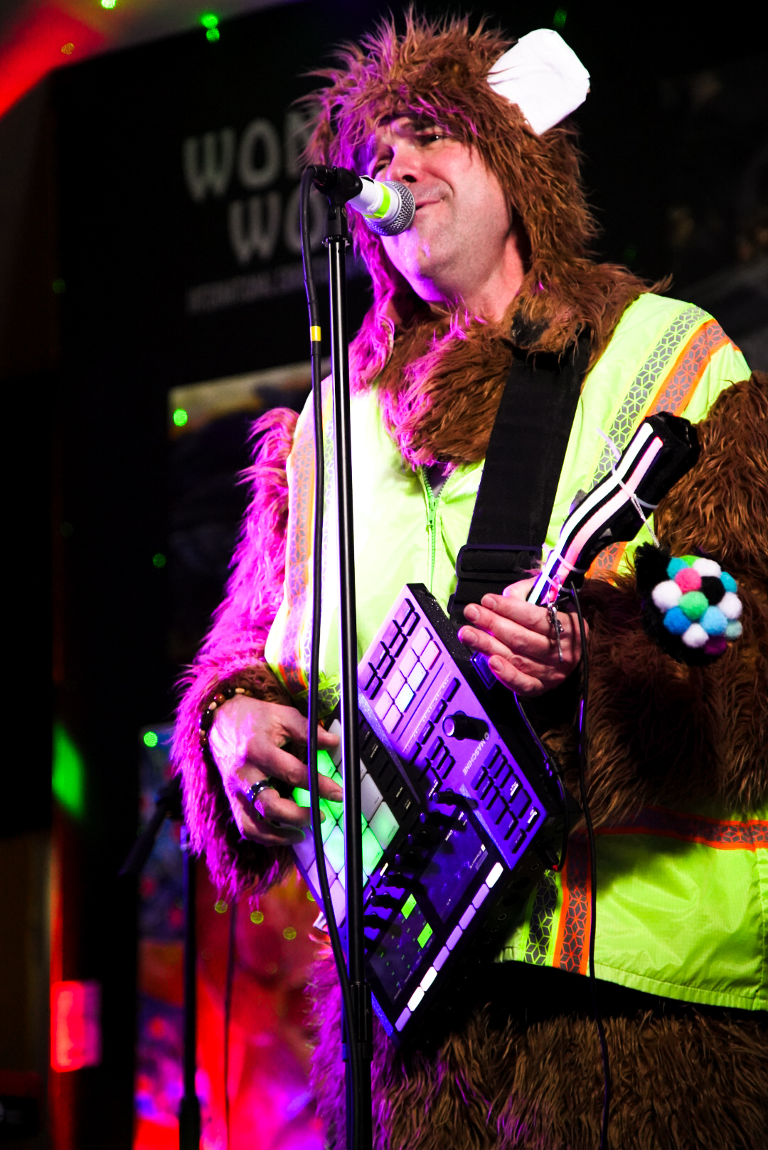 Safety Bear is an independent Hi-NRG electronic artist who weaves together pulsing dance beats and immersive atmospheres with subject matter typically alien to the dance floor. Safety Bear’s energetic live performances and studio recordings deliver original Hi-NRG bangers (and the occasional re-imagined dance classic) via the intriguing guise of a neurotic (and slightly injured) teddy bear. The injured ear, as of yet, remains unexplained. Safety Bear tracks have been remixed by Nate Lanzino, Lane Young, Chinedu Onome, and Sanity Assassin. Safety Bear EP-02 and EP-03 are produced by Steve Wright (Future Islands / Pigeons Playing Ping Pong). Safety Bear EP-04 and EP-05 are produced by Ian Shaw (Bikini Kill / Nick Heyward) . To date, Safety Bear has performed in major U.S. cities including New York, Boston, Washington, D.C., Orlando, Key West, and also in London, England. Local festivals have included the Fort Reno Summer Concert Series and Capitol Pride Celebration.